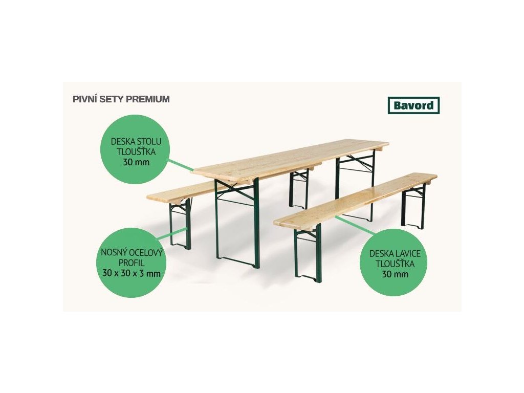 Tyto párty sety jsou vyrobeny z masivního dřeva a kvalitních ocelových profilů. Velkou výhodu jsou opěrky zad, které zajistí pohodlné posezení i na delších oslavách. Samozřejmostí je možnost složení pivních setů pro snadný převoz i uskladnění.